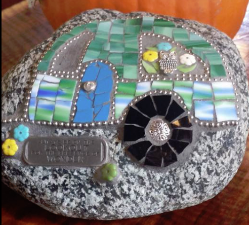 Another thing that Sharon loves to do is come to the Strawhouse and share her gift with others by having Mosaic Rock classes. Her next classes are April 29 & 30th (check our calendar or Facebook page for more details). Thank you Sharon for sharing your awesome creativity with the world!